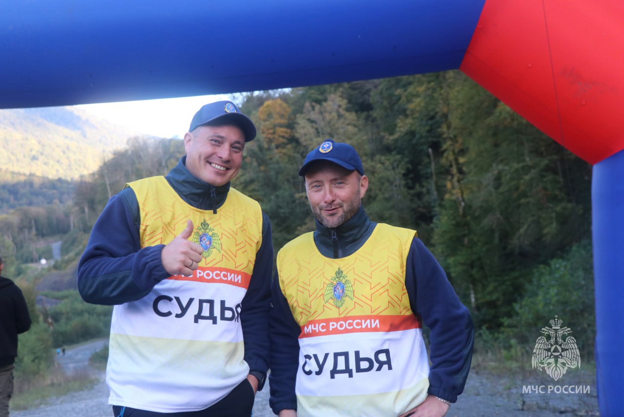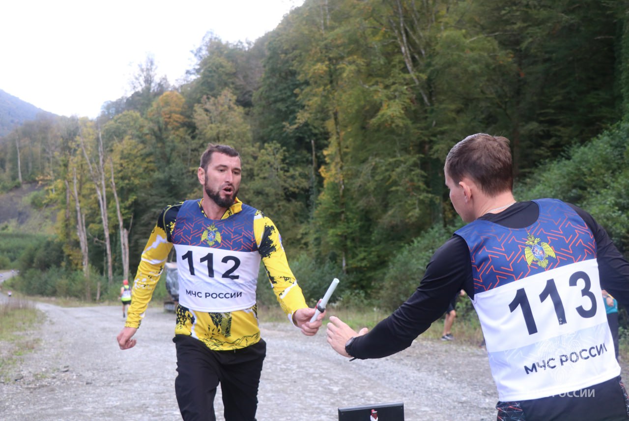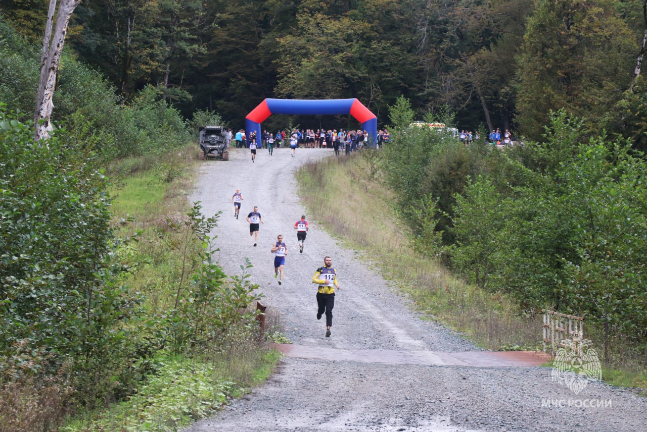 Шесть спасателей от каждой команды бежали по пересеченной местности по маршруту, общей протяженностью 18 километров.