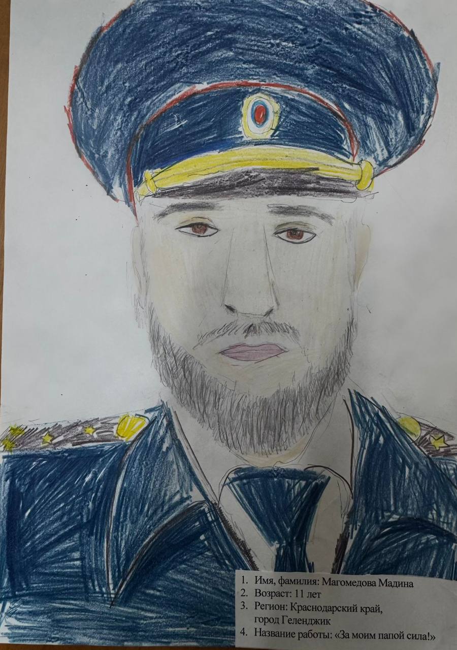 В отдельной номинации, посвященной Году защитника Отечества, победителем стала Мадина Магомедова с работой «За моим папой сила!».