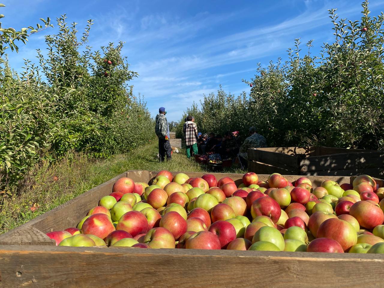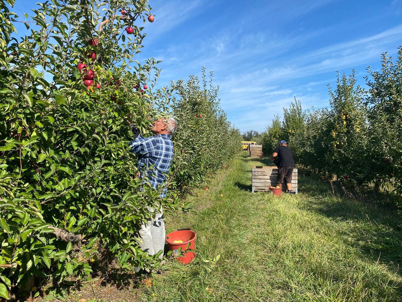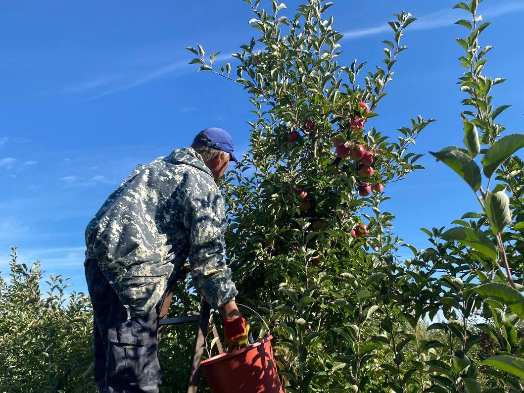 Рано утром закипела работа в садах в районе Ейского шоссе. Там собирают урожай яблок.