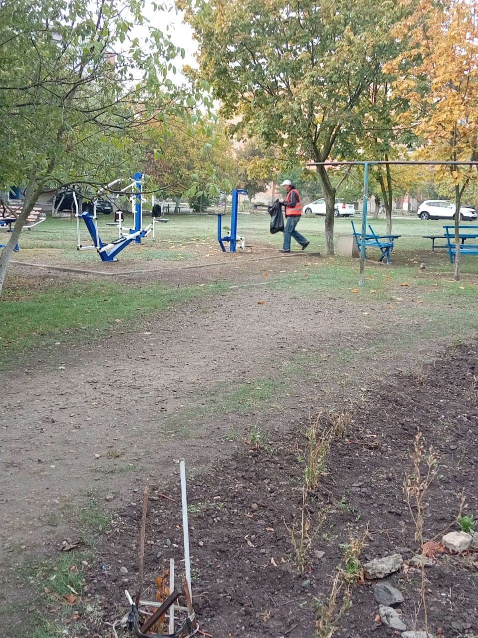 Проведение уборки на детской площадке по ул. Красной, 47/3.