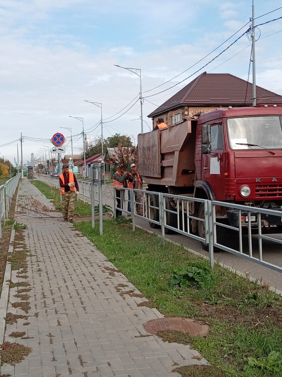 Уборка веток по ул. Шмидта, ул. Коммунистической, 83/1, ул. Красной, 35/1.