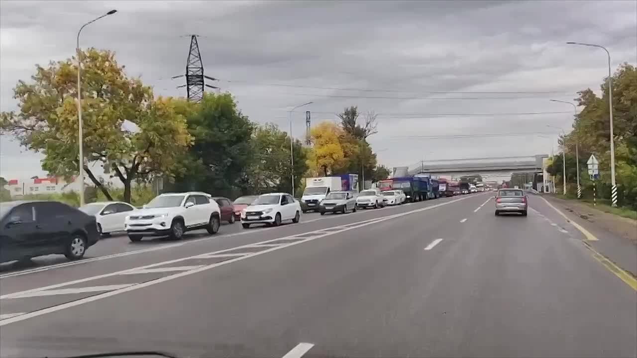Местные жители говорят, что большие скопления машин на этом участке с самого утра и почти до полуночи. Они винят в заторе ремонт моста через реку Афипс.
