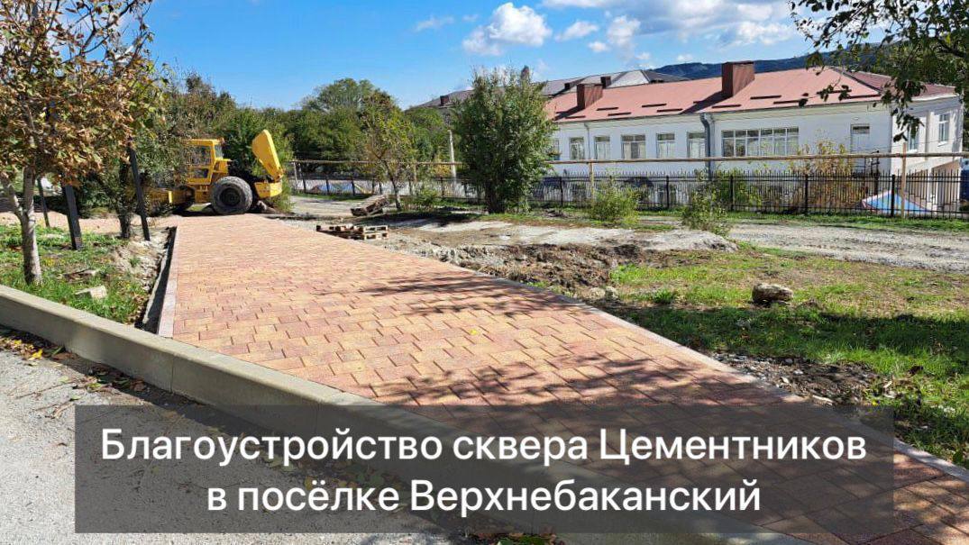 Проходит второй этап строительства сквера Цементников в поселке Верхнебаканский. Идет формирование площади и укладка тротуарной плитки. Новый сквер соединит важные социальные объекты.