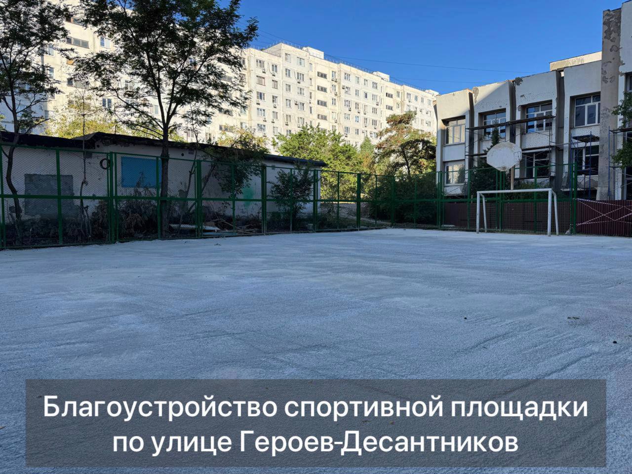 Благоустройство спортивной площадки по улице Героев-Десантников продолжается. Уже завершены демонтажные работы, заменены секции ограждения, сформирована подложка территории спортивной площадки под новое синтетическое покрытие. Установлены системы видеонаблюдения и освещения, в скором времени появятся новые спортивные элементы, в том числе баскетбольные кольца и щиты.