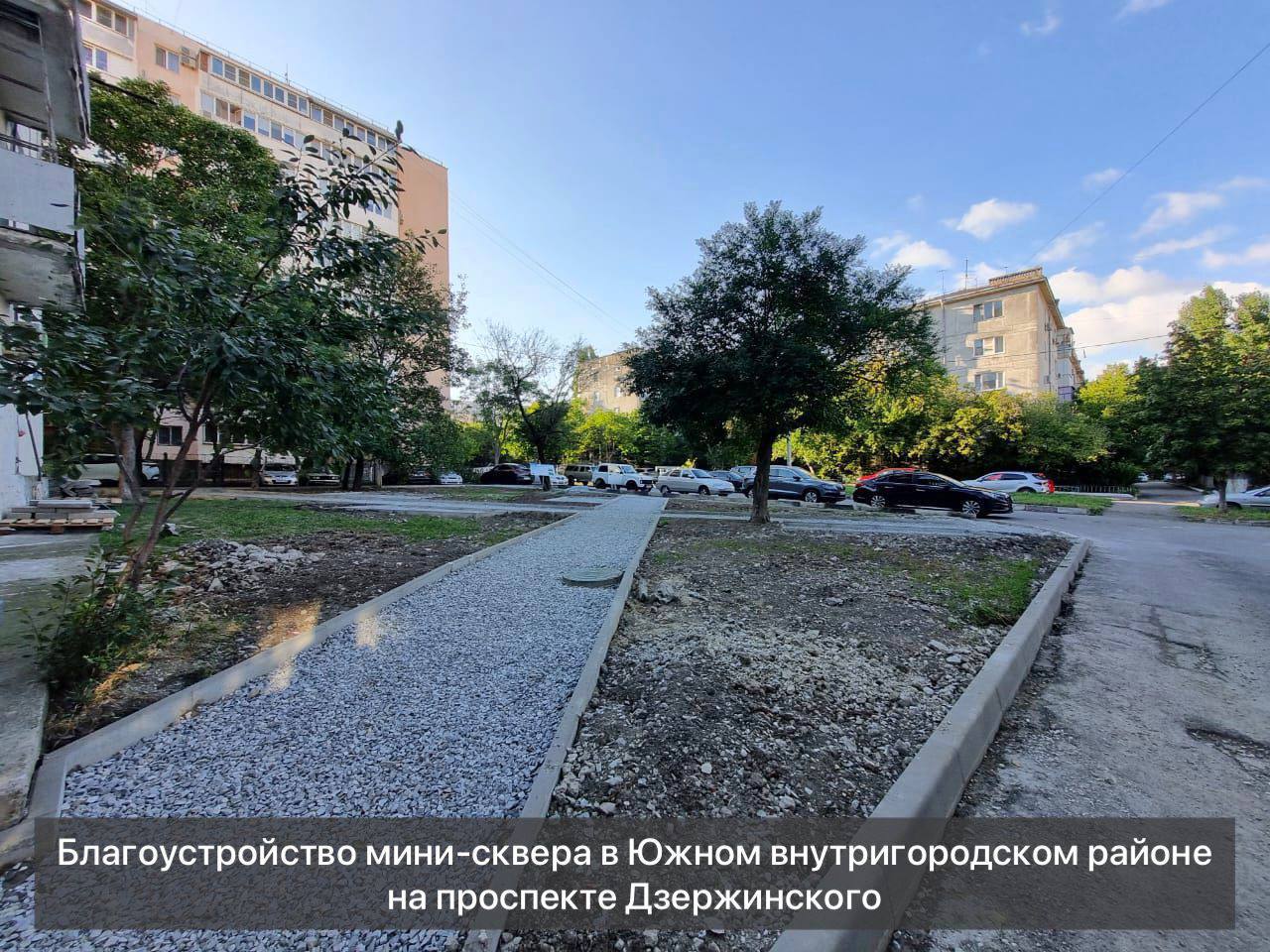 В Южном внутригородском районе на проспекте Дзержинского началось создание мини-сквера. Уже сформирована территория, установлены бордюры и отсыпано щебнем основание. В ближайшее время здесь появятся тротуарная плитка, лавочки и урны.