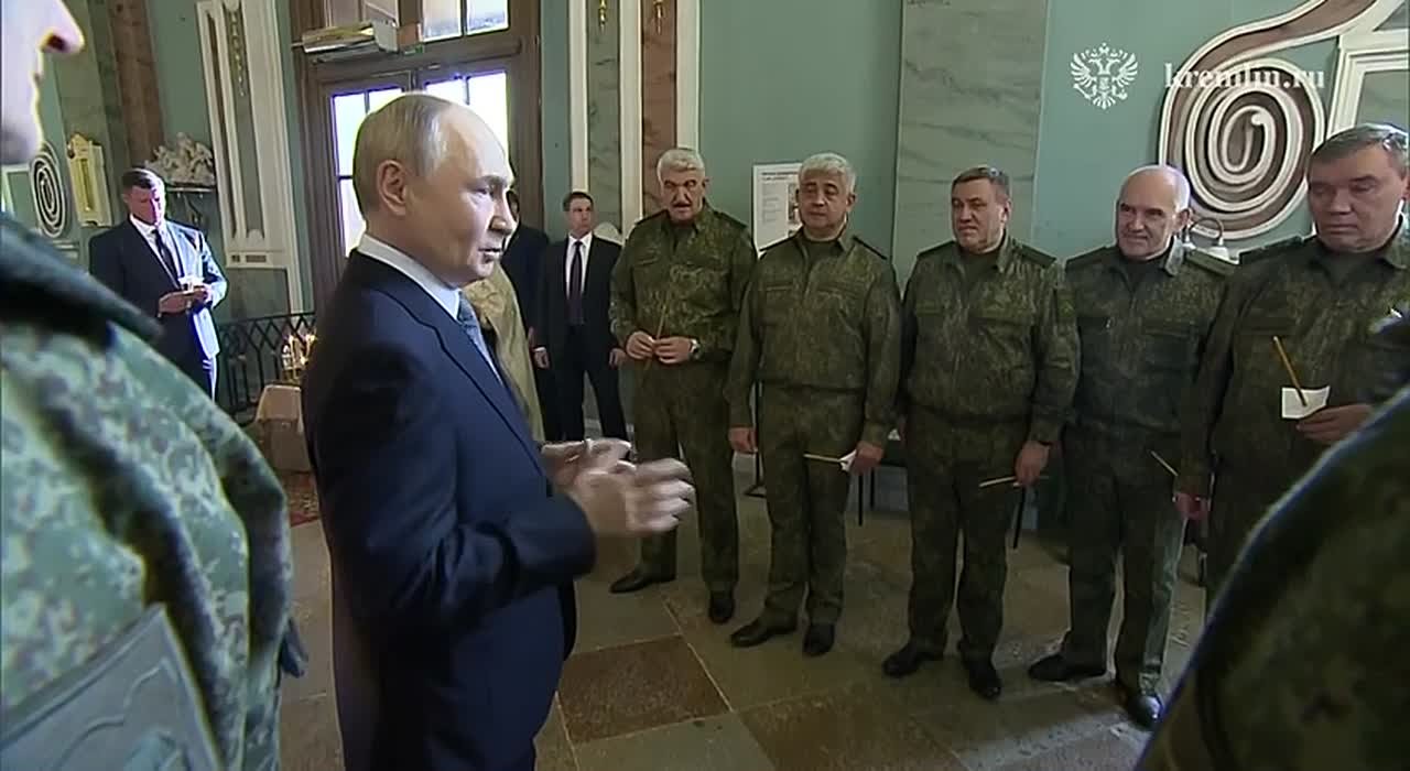 В городе российский лидер посетил Петропавловский собор в Петропавловской крепости и провел совещание с командующими группировками войск, которые доложили об обстановке на участках фронта.