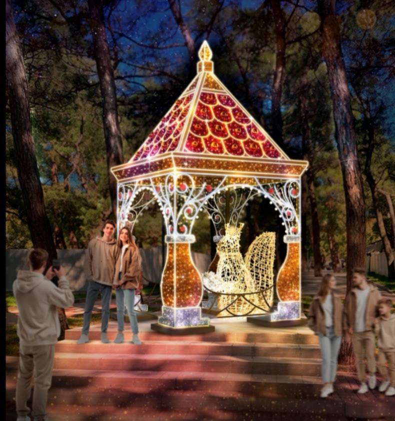 В мэрии планируют установит 17 декораций. Девять уникальных инсталляций и восемь световых арок.