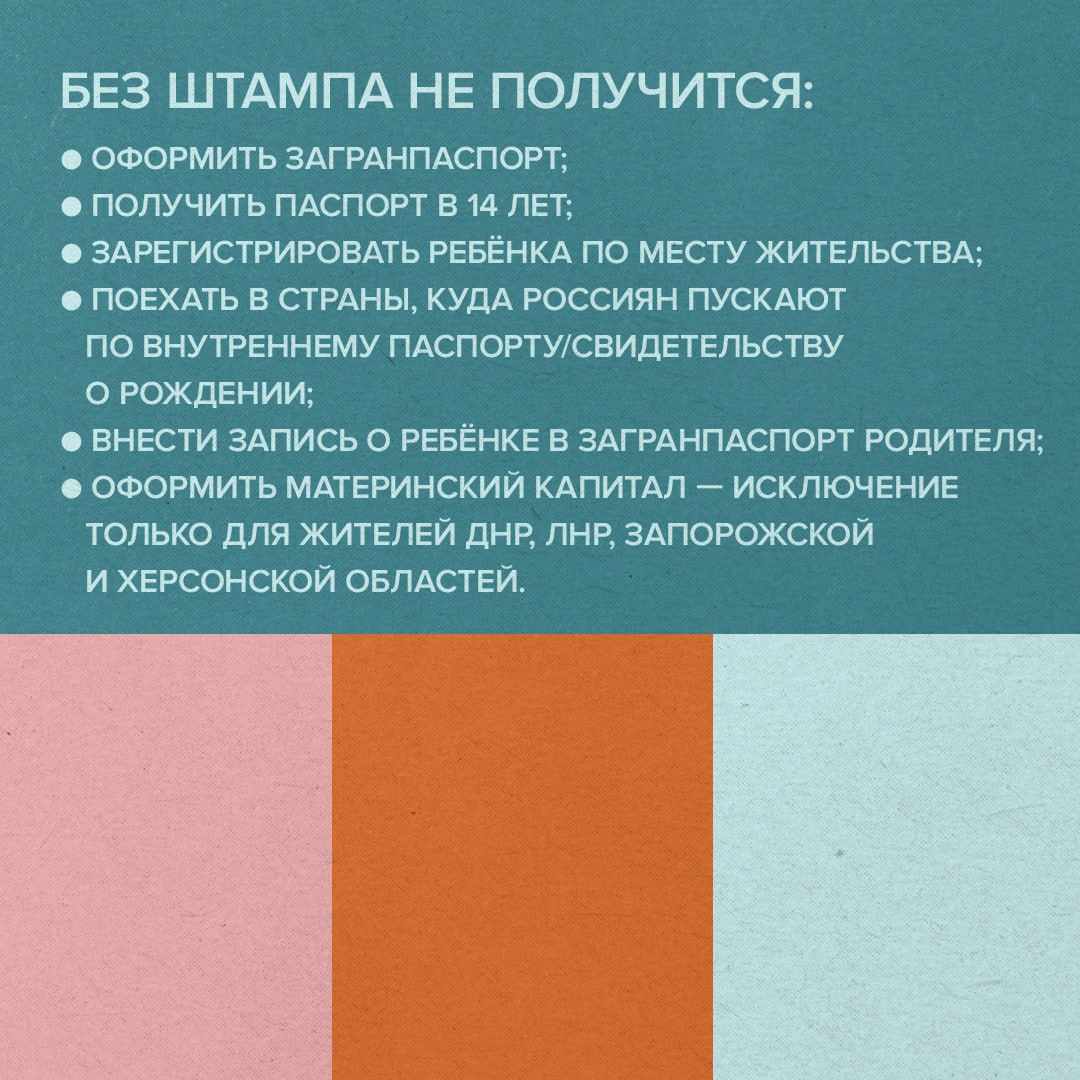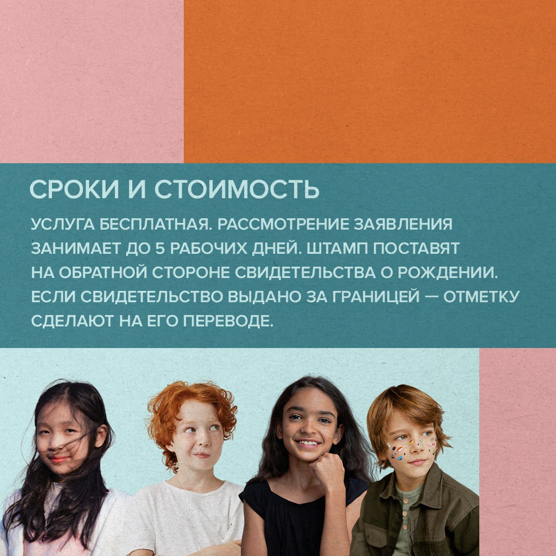 Всем несовершеннолетним до 14 лет на свидетельстве о рождении проставляют особую отметку — штамп о гражданстве. Он нужен, например, чтобы получить паспорт или выехать за границу.