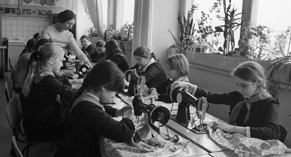 В СССР уроки домоводства были важной частью школьной программы. Если мальчишки шли на уроки труда, где мастерили табуретки и учились держать в руке инструмент, то девочки учились шить и готовить.