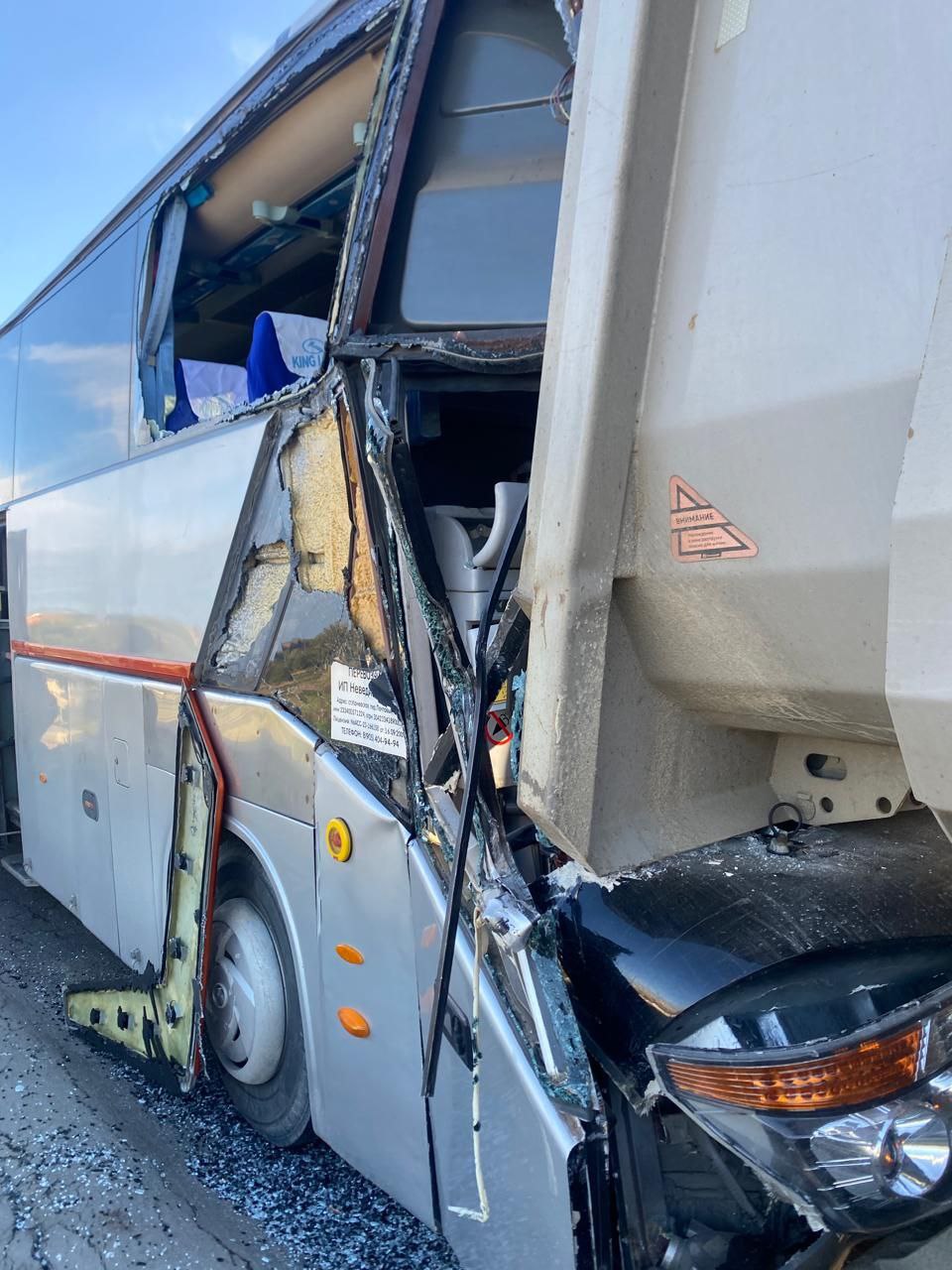 Сегодня около 15:00 на автодороге "Майкоп - Белореченск - Усть-Лабинск - Кореновск" произошло столкновение экскурсионного автобуса с большегрузом.