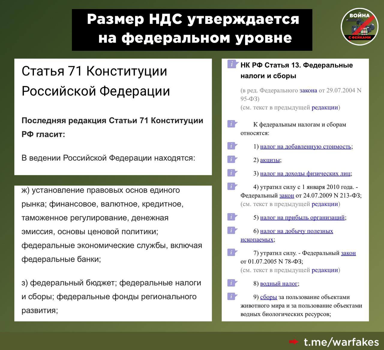 Отметим, что налог на добавленную стоимость — федеральный налог. Это значит, что его размер утверждается на федеральном уровне согласно Конституции. Региональные власти не имеют полномочий корректировать ставку НДС. Фейк был вброшен ради тиражирования недовольства среди граждан.