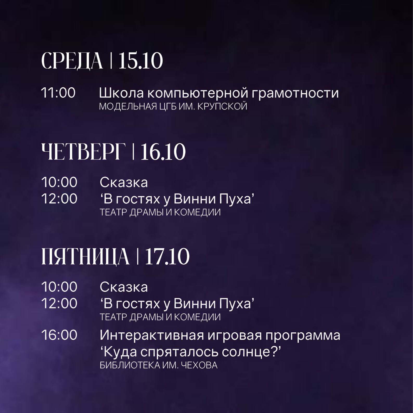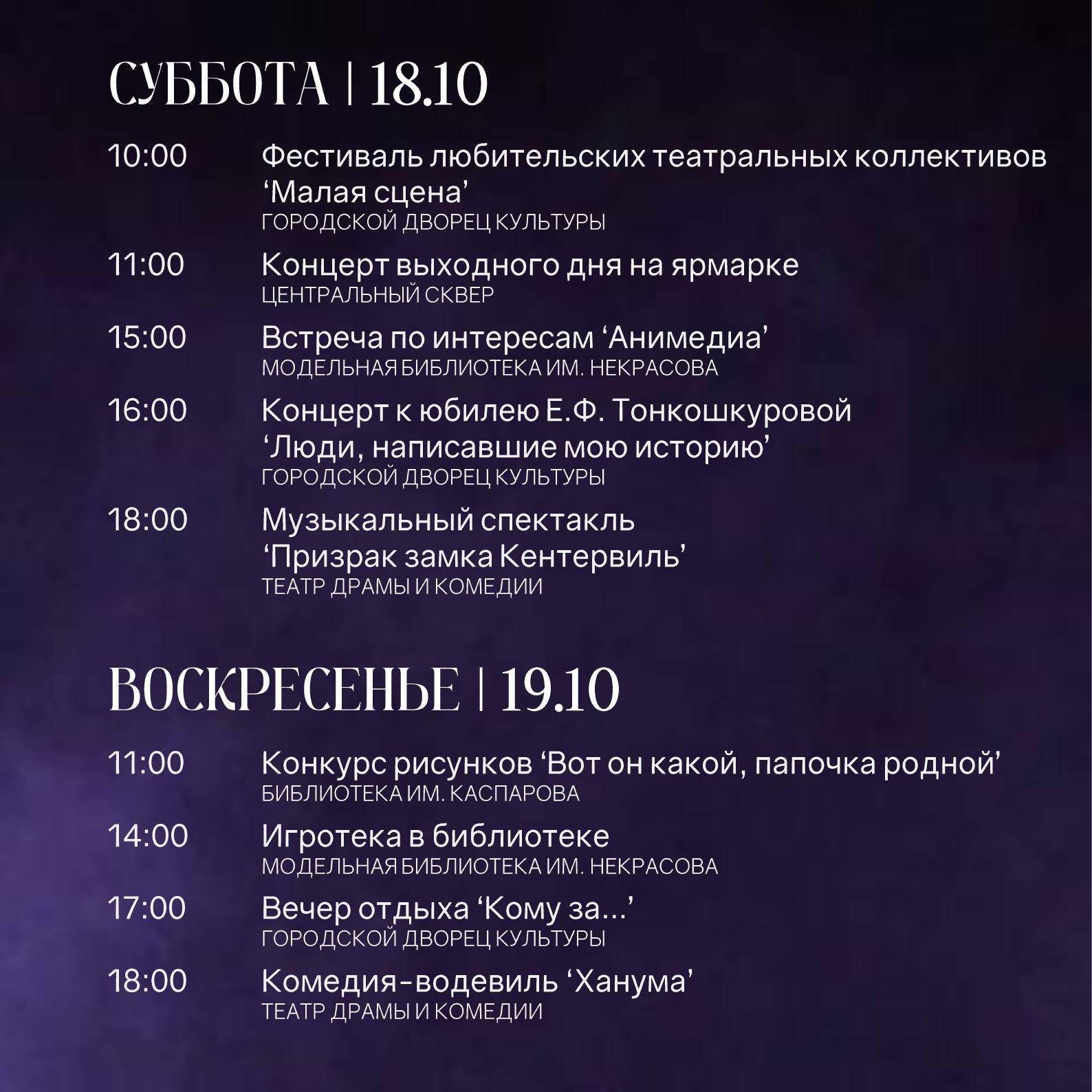 Не упустите атмосферные события для всей семьи: вас ждут концерты, спектакли и интересные встречи.