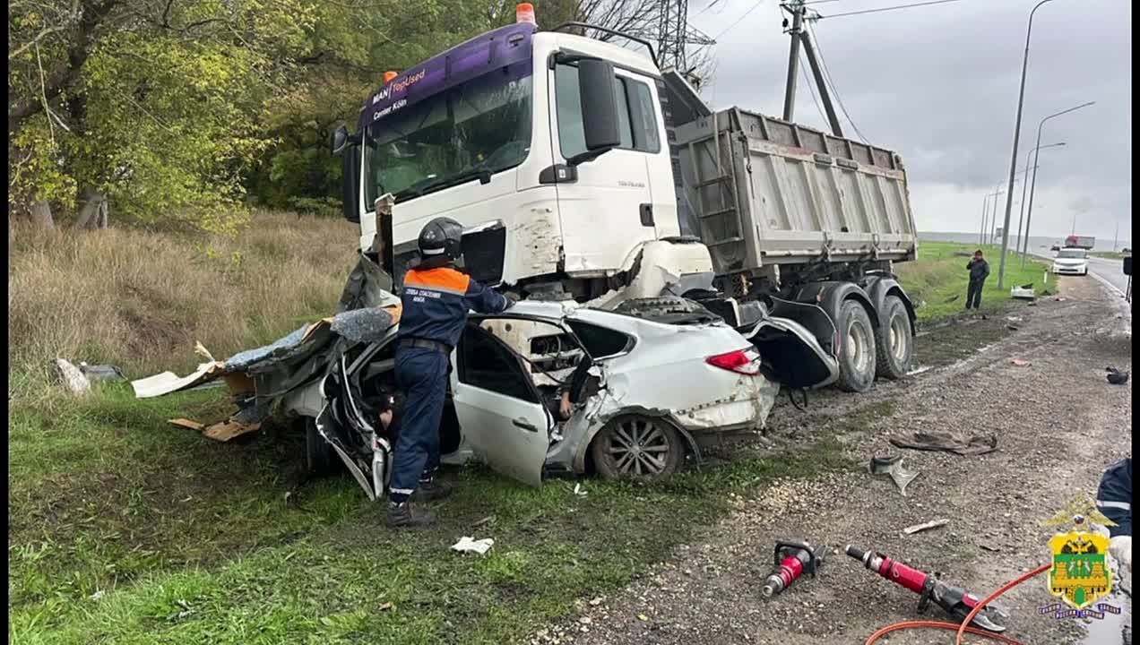 3 человека погибли: легковушку смяло в ДТП с самосвалом в Анапе.