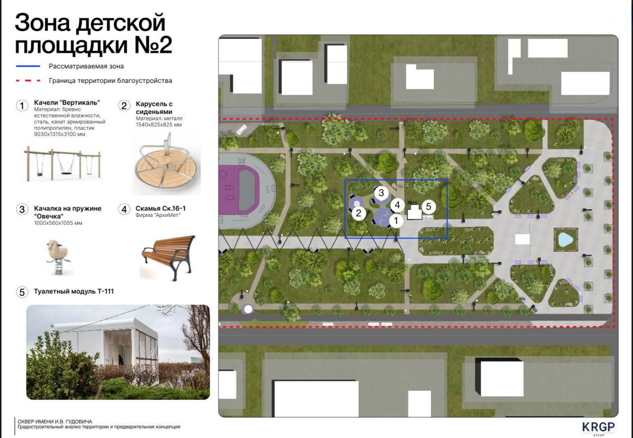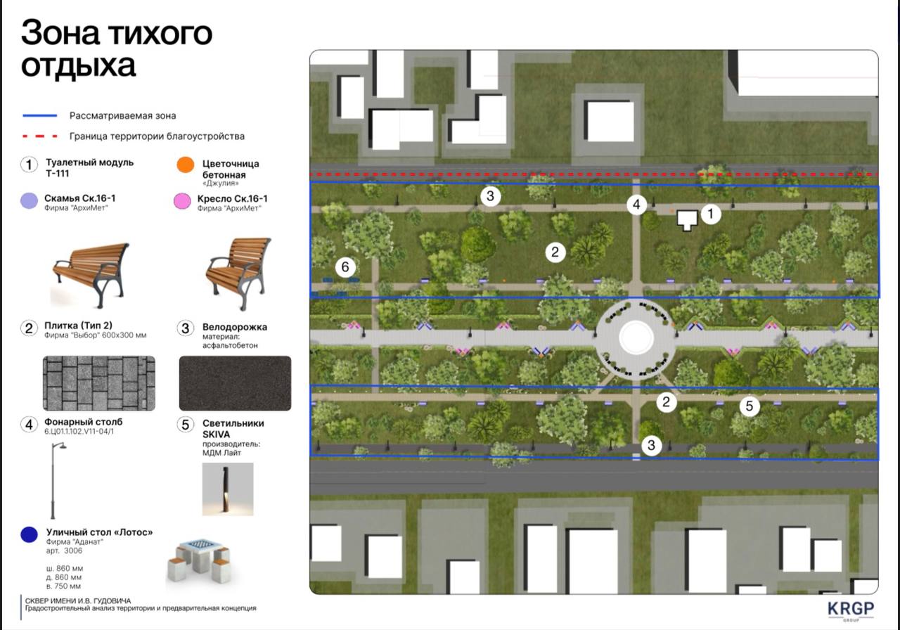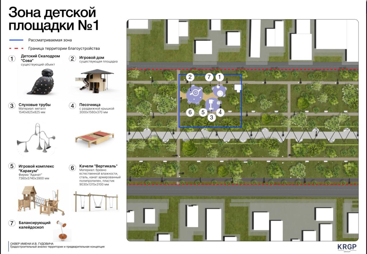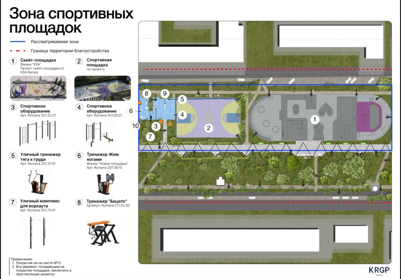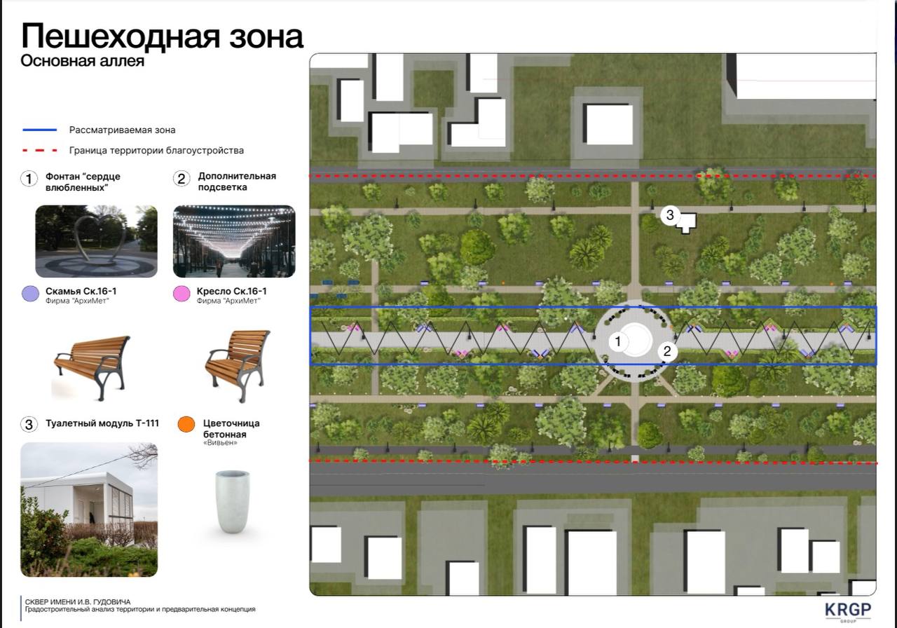 В рамках первого этапа подрядная организация выполнит прокладку новых инженерных сетей — уличного освещения, системы автоматического полива, видеонаблюдения и оповещения. Также предусмотрена полная замена тротуарного покрытия, установка новых малых архитектурных форм, благоустройство территории у скейт-парка и обустройство спортивной площадки.