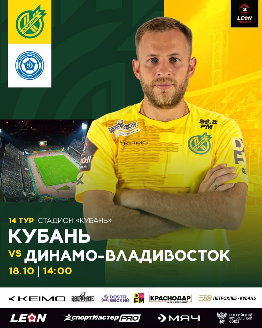 ПФК «Кубань» сыграет с «Динамо-Владивосток» уже в эту субботу