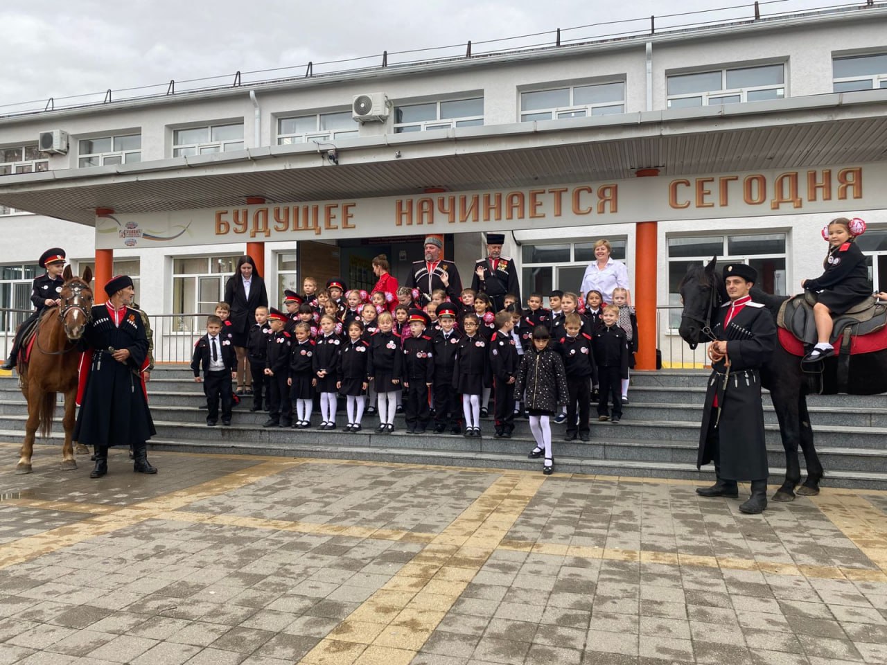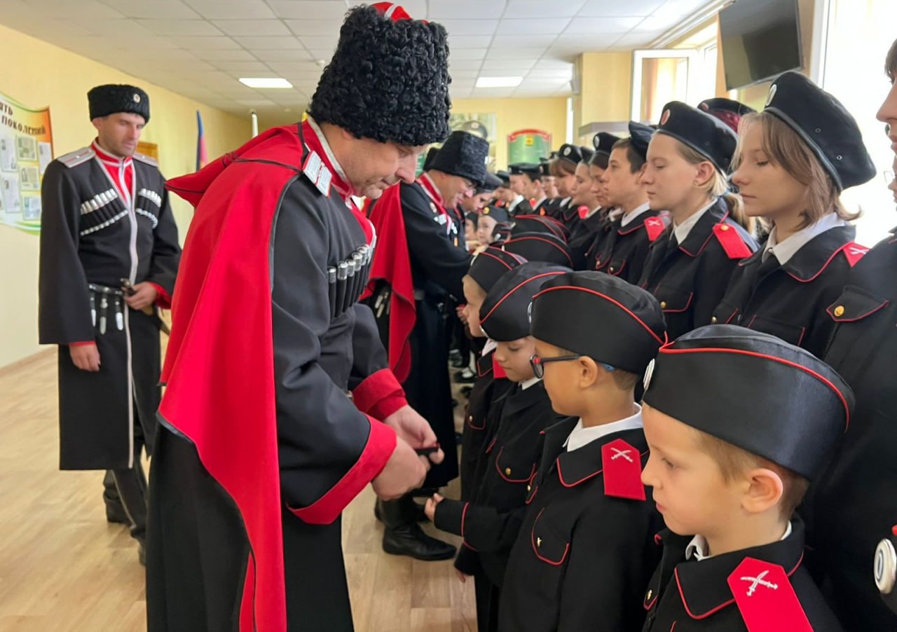 Торжественная линейка, посвященная Дню Кубанского казачьего войска и православному празднику Покрова Пресвятой Богородицы, началась с выноса Российского триколора, флагов Краснодарского края и Новороссийска. Старшеклассники, стоя за спинами малышей, которым казаки-наставники вручали алые погоны и казачьи заповеди, вживую исполняли гимны России и Кубани. На 28 новобранцев пополнились ряды Союза казачьей молодежи Кубани.