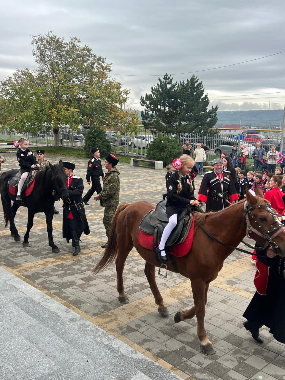 Ярким моментом посвящения в казачата для ребят стал ритуал посажения на коня. Сразу трех скакунов привели казаки для соблюдения давней традиции предков, когда мальцов сажали впервые верхом в седло, после чего ребенок считался юным казаком и вступал в пору ответственности за свои поступки.