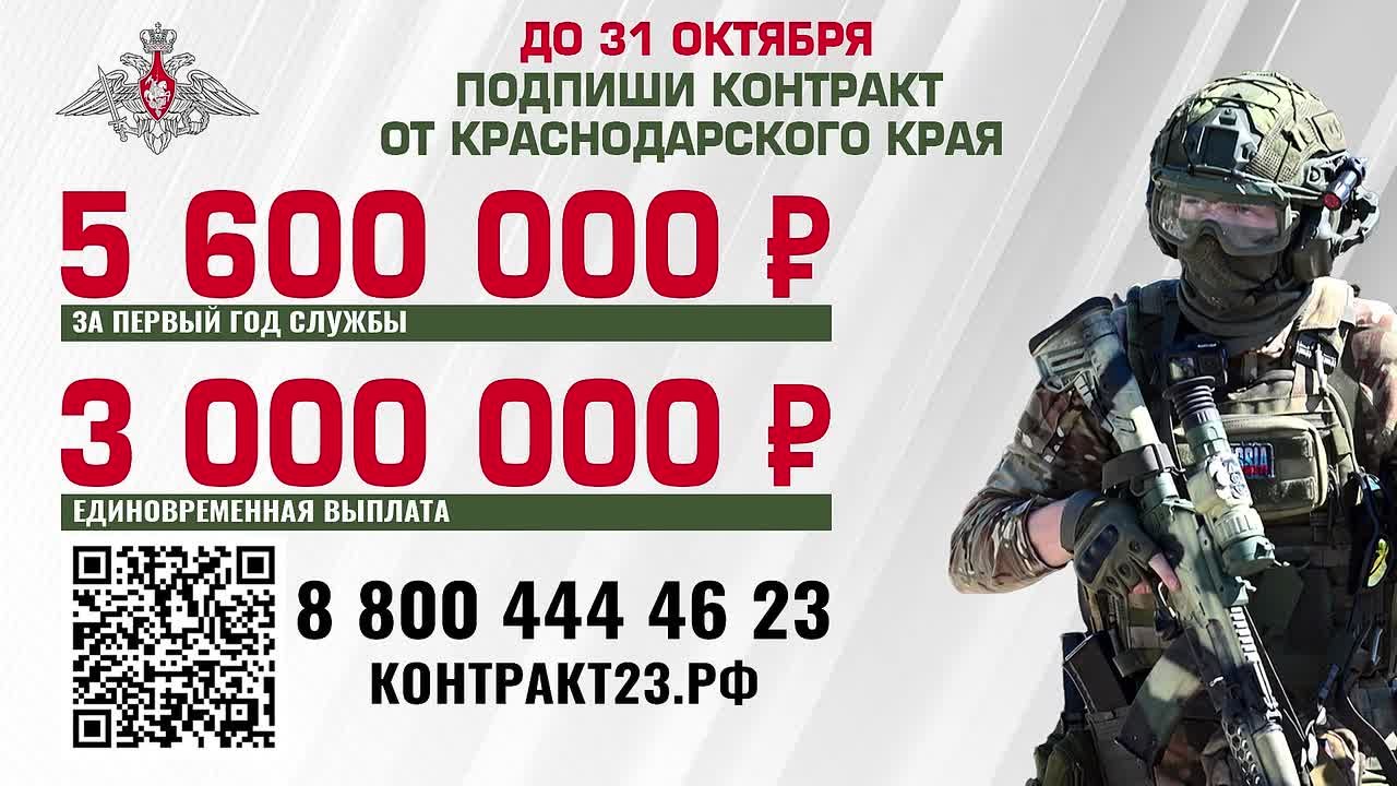 На службу приглашаются граждане в возрасте до 35 лет, уверенно владеющие компьютером. Для них будут доступны все действующие меры поддержки участников спецоперации. Напомним, что по решению Губернатора Краснодарского края при подписании контракта на Кубани до 31 октября военнослужащие получат увеличенную единовременную выплату в размере 3 млн рублей.