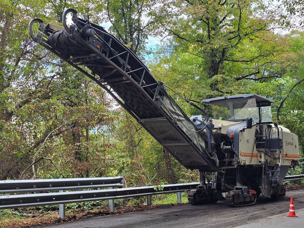 Подготовительный этап завершился установкой временных знаков и геодезическими работами. Проводится демонтаж верхнего слоя старого покрытия. Подрядчиками планируется устранить просадки дорожного полотна, заменить верхний слой асфальтобетонного покрытия, обустроить водоотводные лотки и установить наружное освещение.