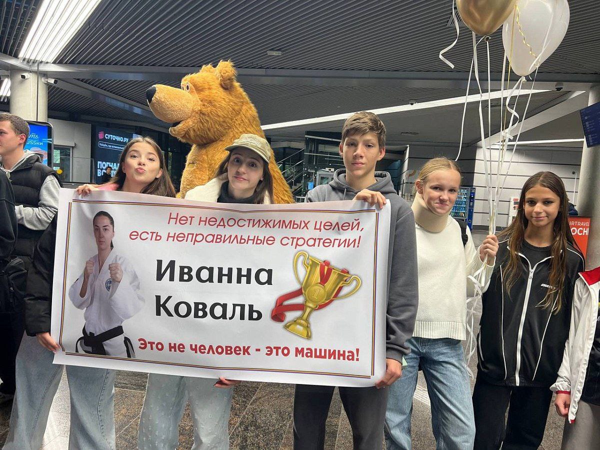 В аэропорту Сочи торжественно встретили бронзового призера чемпионата мира по тхэквондо ИТФ Иванну Коваль