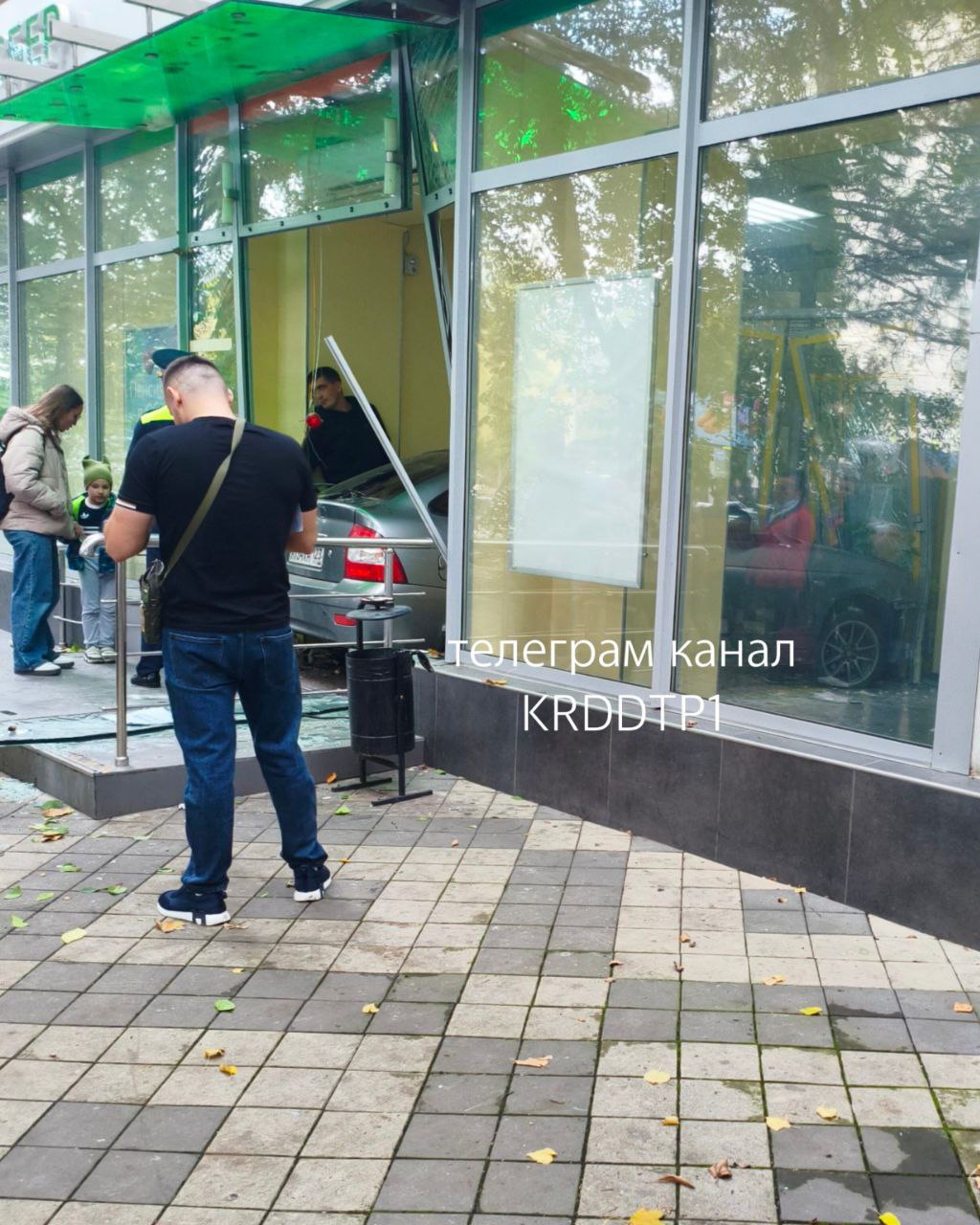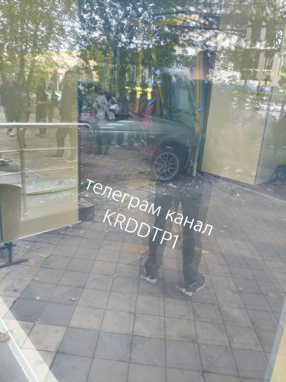 «Заехал» в банк буквально: легковушка протаранила здание в Краснодаре.