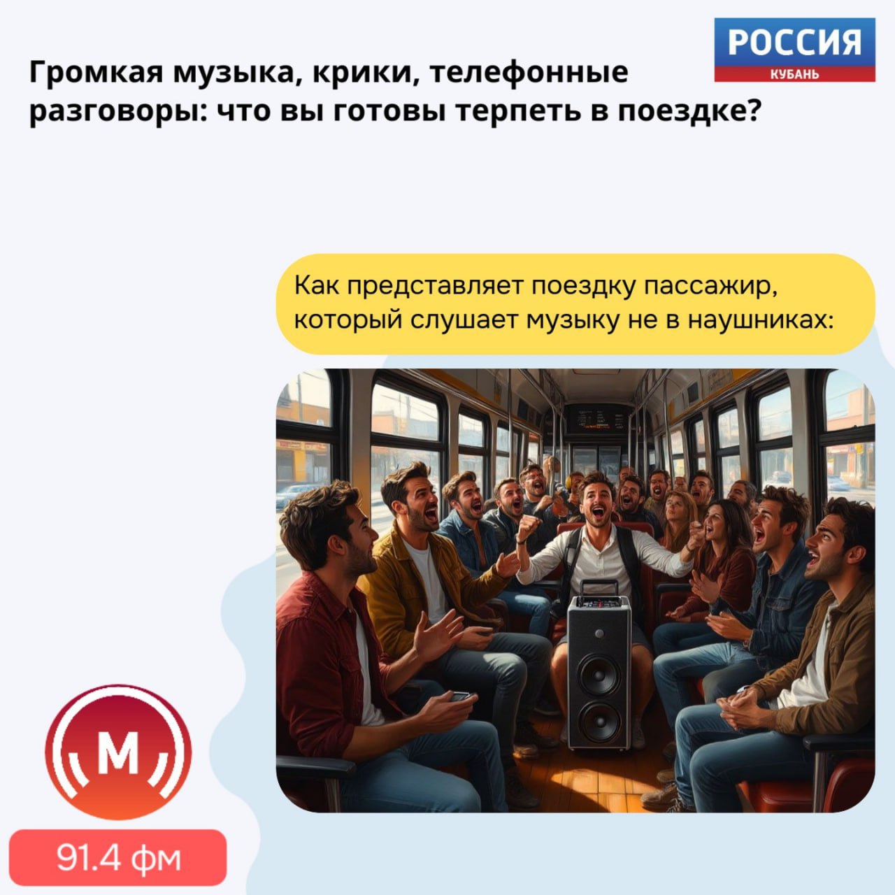 Сегодня в 18:10 на краснодарском «Маяке» (91.4 ФМ) обсудим нормы поведения в общественном транспорте с экспертом по этикету Яной Черняевой.