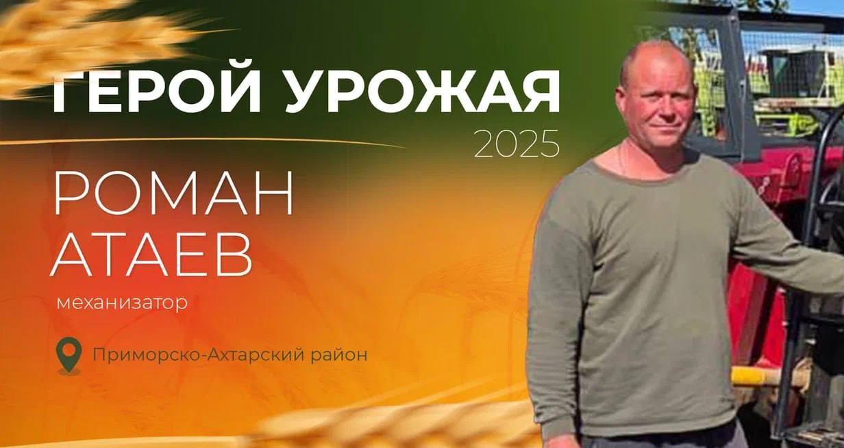 Роман Атаев — опытный механизатор ООО «Восток» в Приморско-Ахтарском округе. В сельском хозяйстве работает с 2011 года.