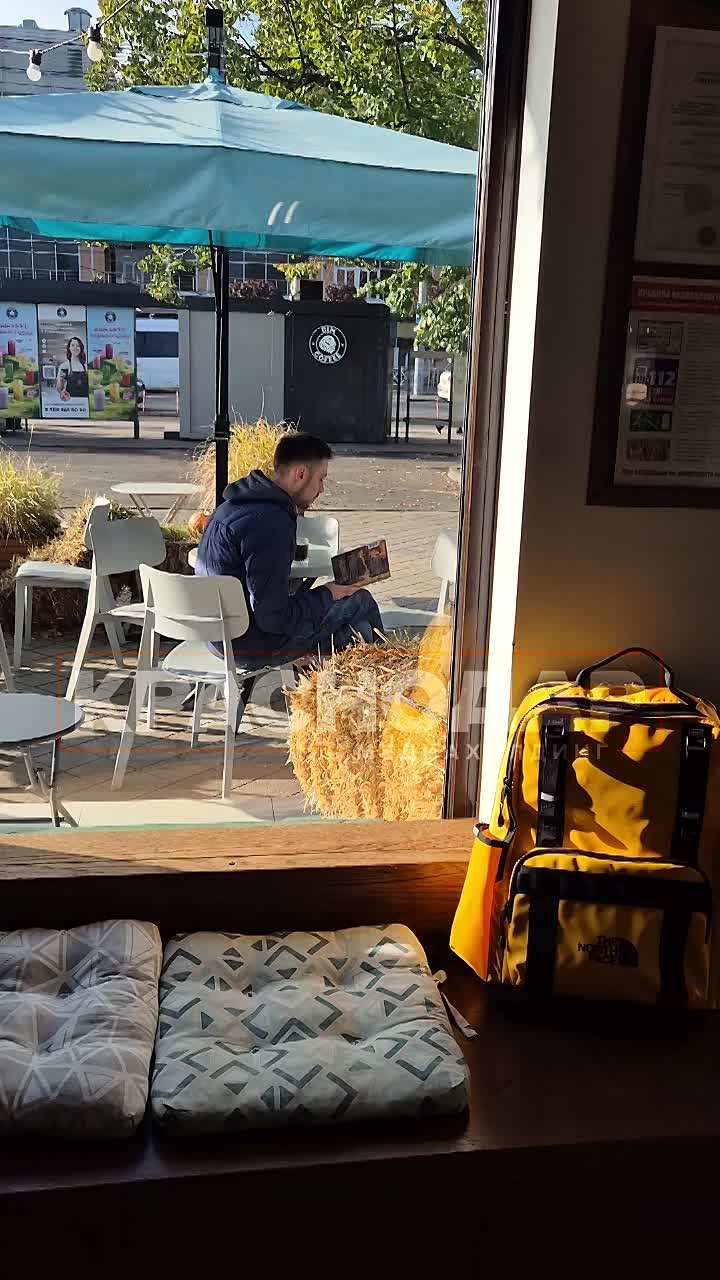 Вот сегодня подписчики сняли молодого человека, который мирно пил кофе и читал книгу. Очень похвальное увлечение! Судя по обложке, это какое-то современное произведение.