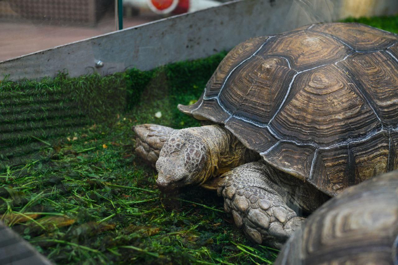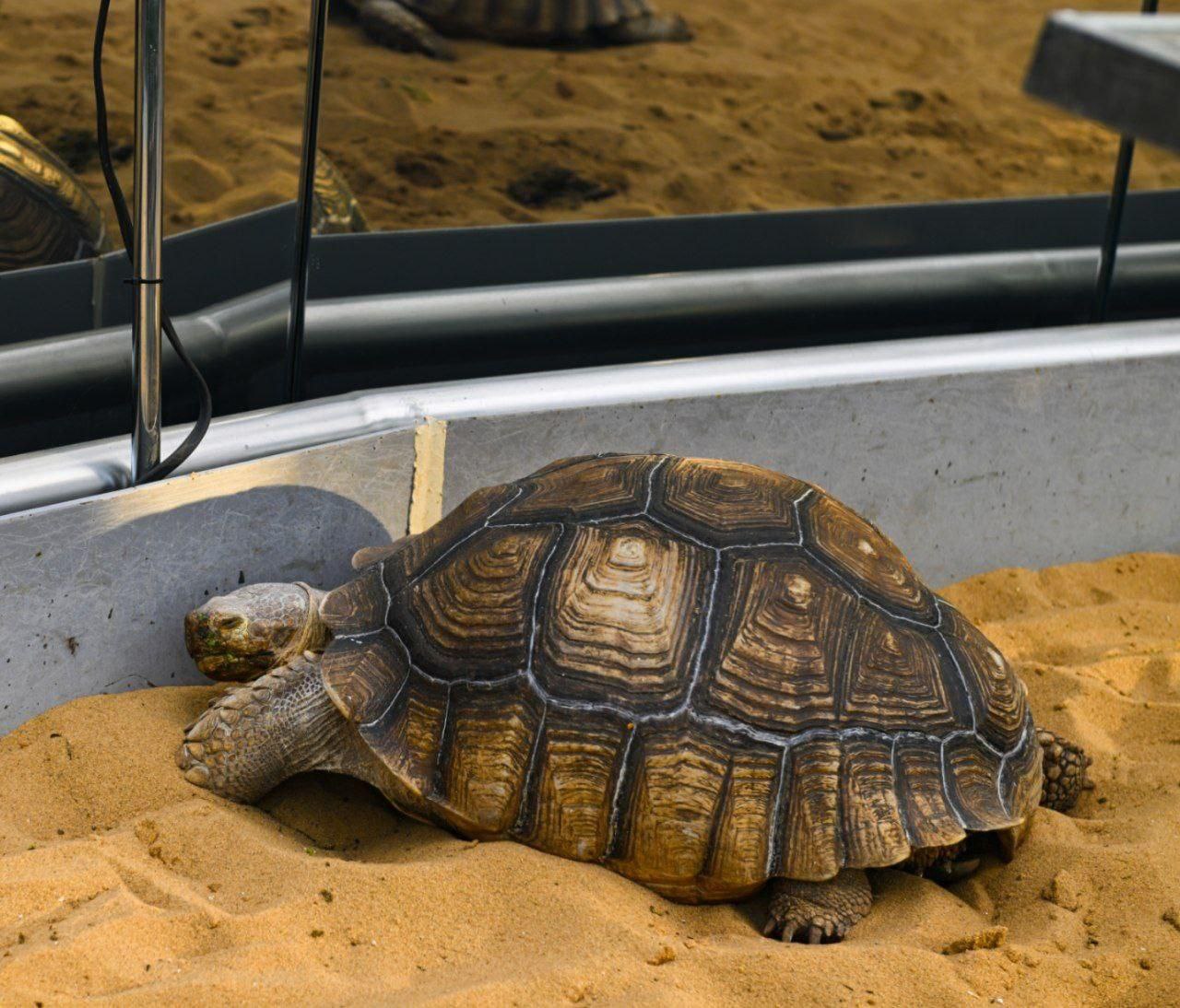 По словам сотрудников парка «Краснодар», шпороносные черепахи чувствуют приближение холодов раньше всех. Им необходимо греться под лампами в ожидании весны.