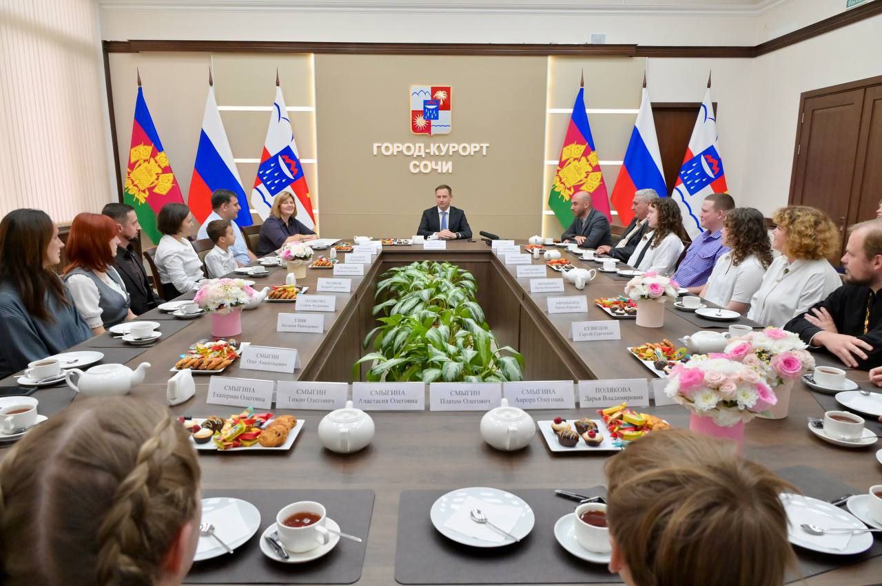 Награждение состоялось в администрации города в преддверии Дня отца. Глава Сочи вручил знаки отличия пяти многодетным сочинцам. Каждый из них не только воспитал от трех до семи детей, но и сам является примером активного гражданина и патриота своей страны.