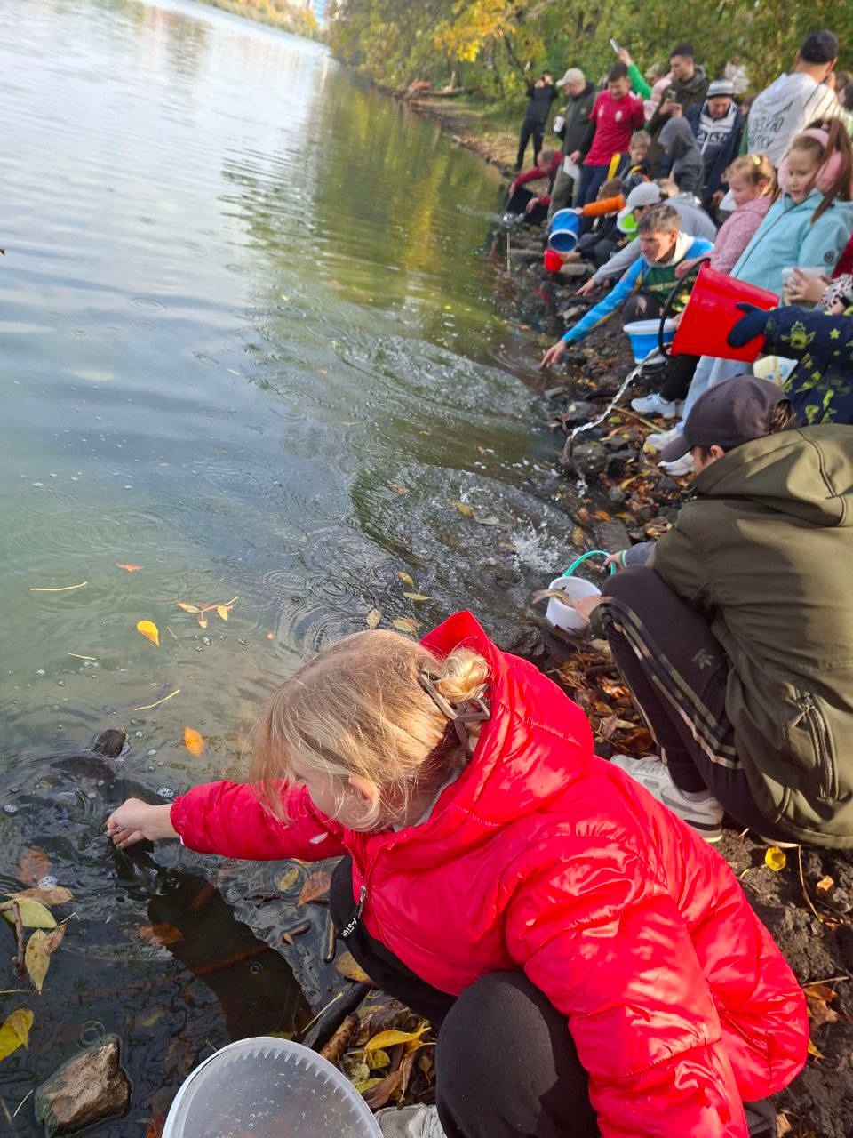 Сначала убирали мусор из воды и с берега, а потом детвора выпустила в озера несколько тысяч мальков белого амура и толстолобика.