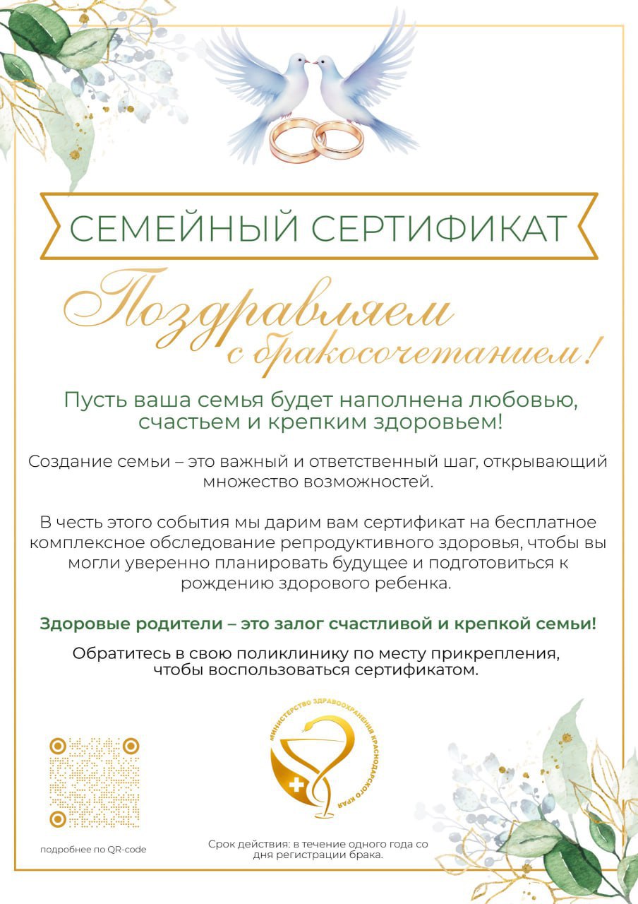 Теперь вместе со свидетельством о браке в загсах супругам вручают сертификат «Семейный». Об этом рассказала и.о. вице-губернатора Анна Минькова.