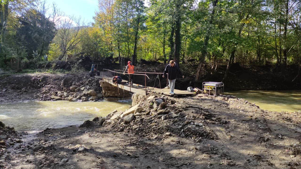 Ночью в муниципалитет прошел сильный дождь. Уровень воды в реке немного поднялся, что и стало причиной повреждения насыпи. С раннего утра на месте работала тяжелая техника. Пешеходный мост и временная переправа для автотранспорта уже доступны для пользования.