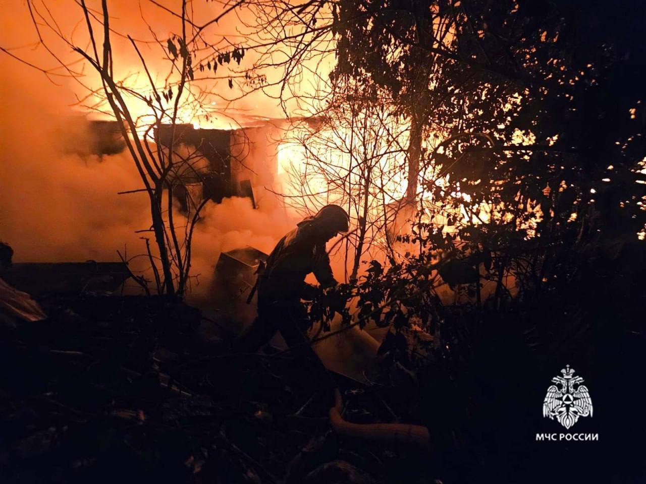 Минувшей ночью в Дагомысе произошёл крупный пожар. Огонь охватил около 350 квадратных метров и полностью уничтожил три частных дома.