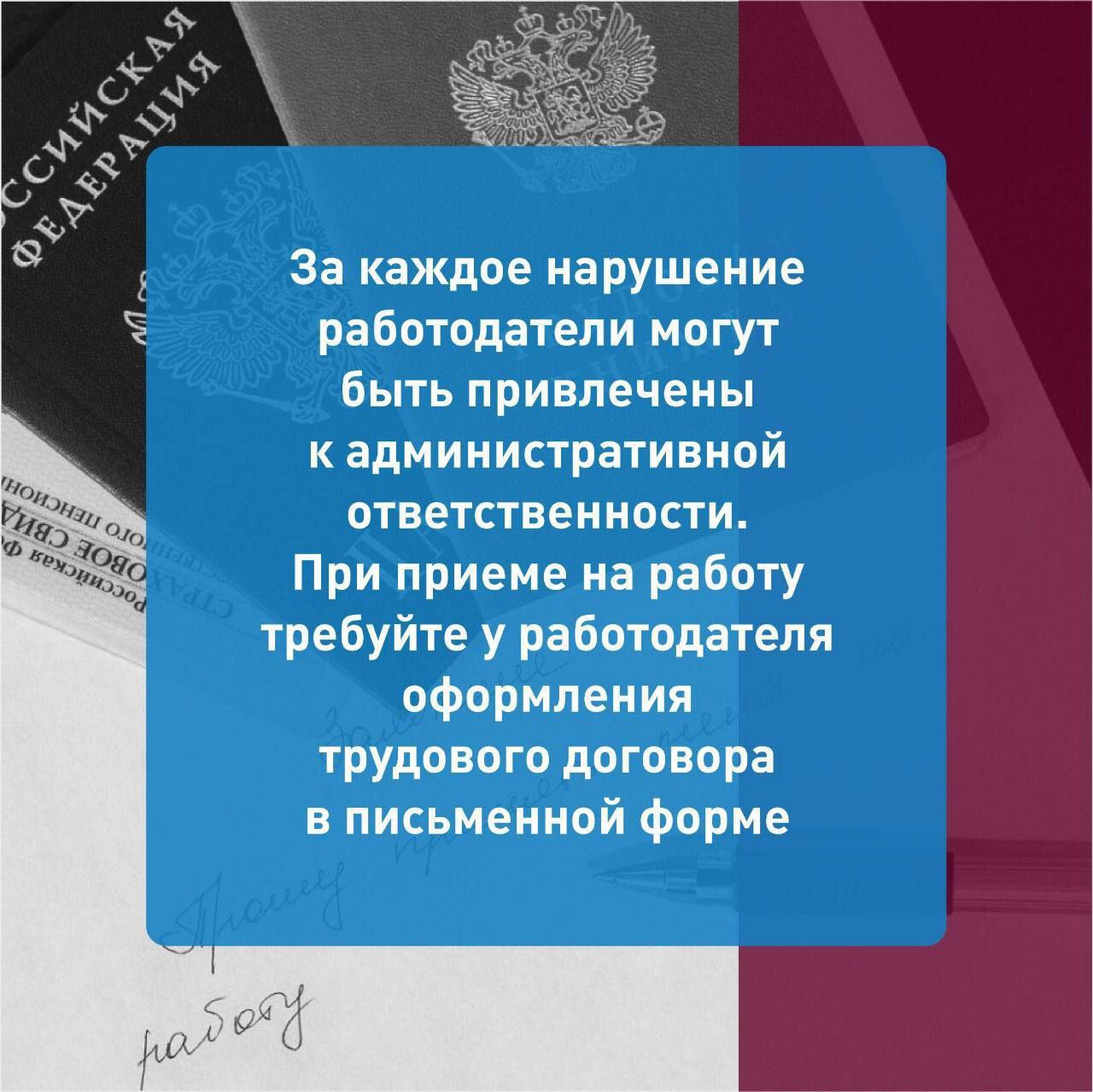 При приеме на работу требуйте у работодателя оформления трудового договора в письменной форме!