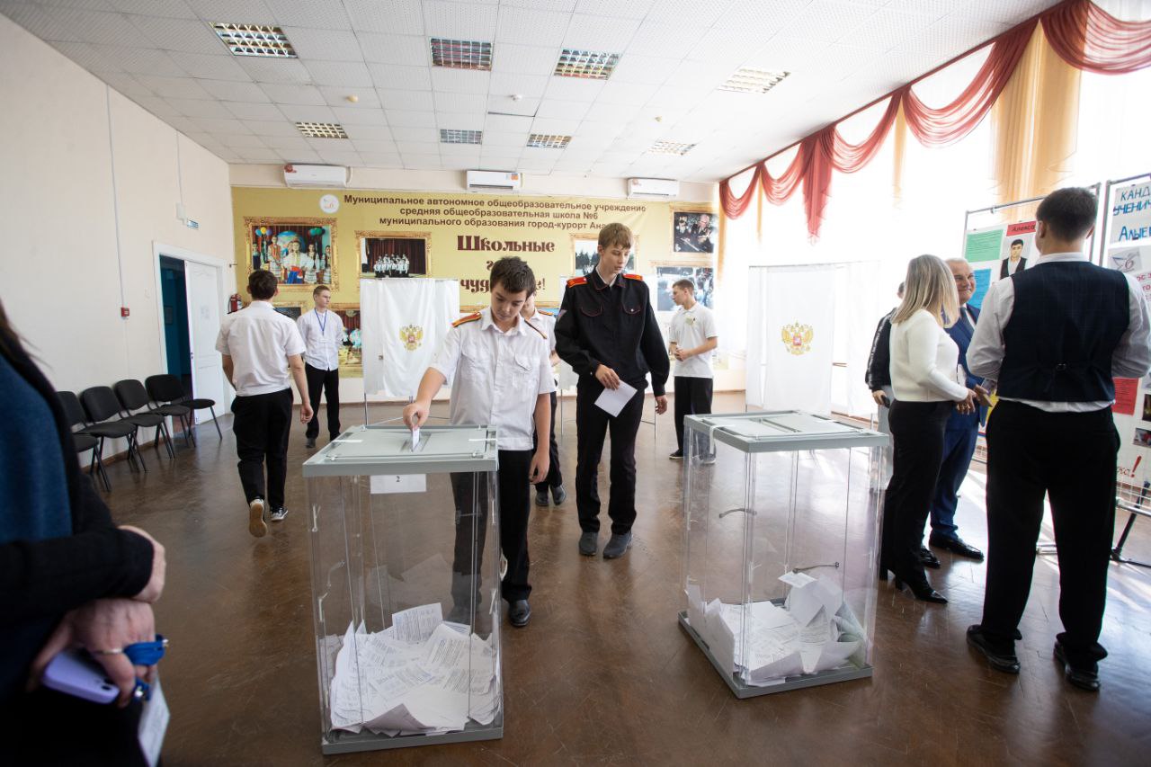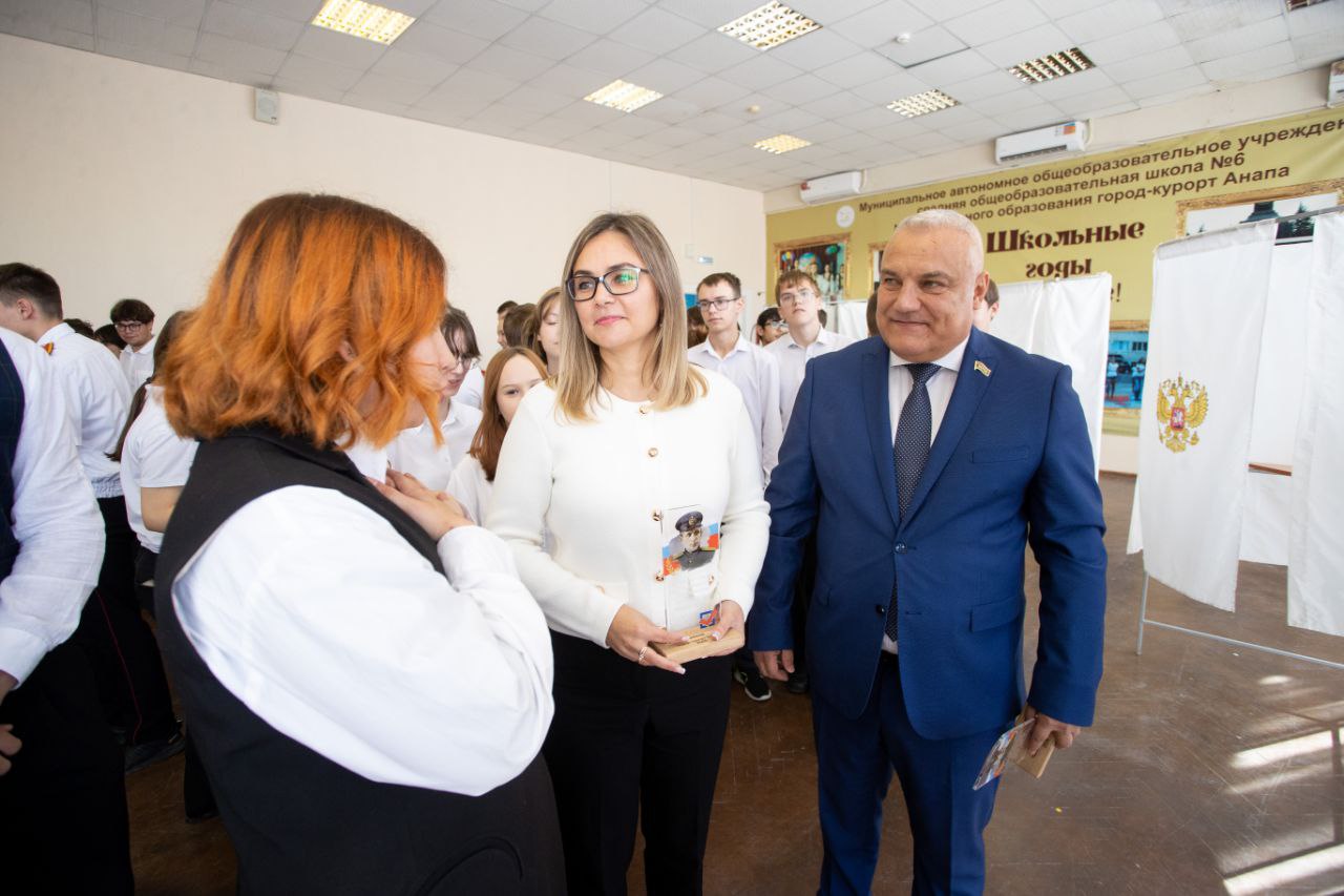 В единый день голосования школу № 6 посетили начальник управления молодежной политики мэрии Анапы Юлия Вовк и заместитель председателя Совета депутатов города-курорта Владимир Пономарев.