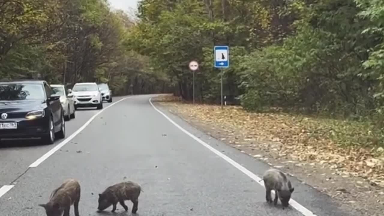 Маленькие кабанчики собрали желающих красивое фото в пробку