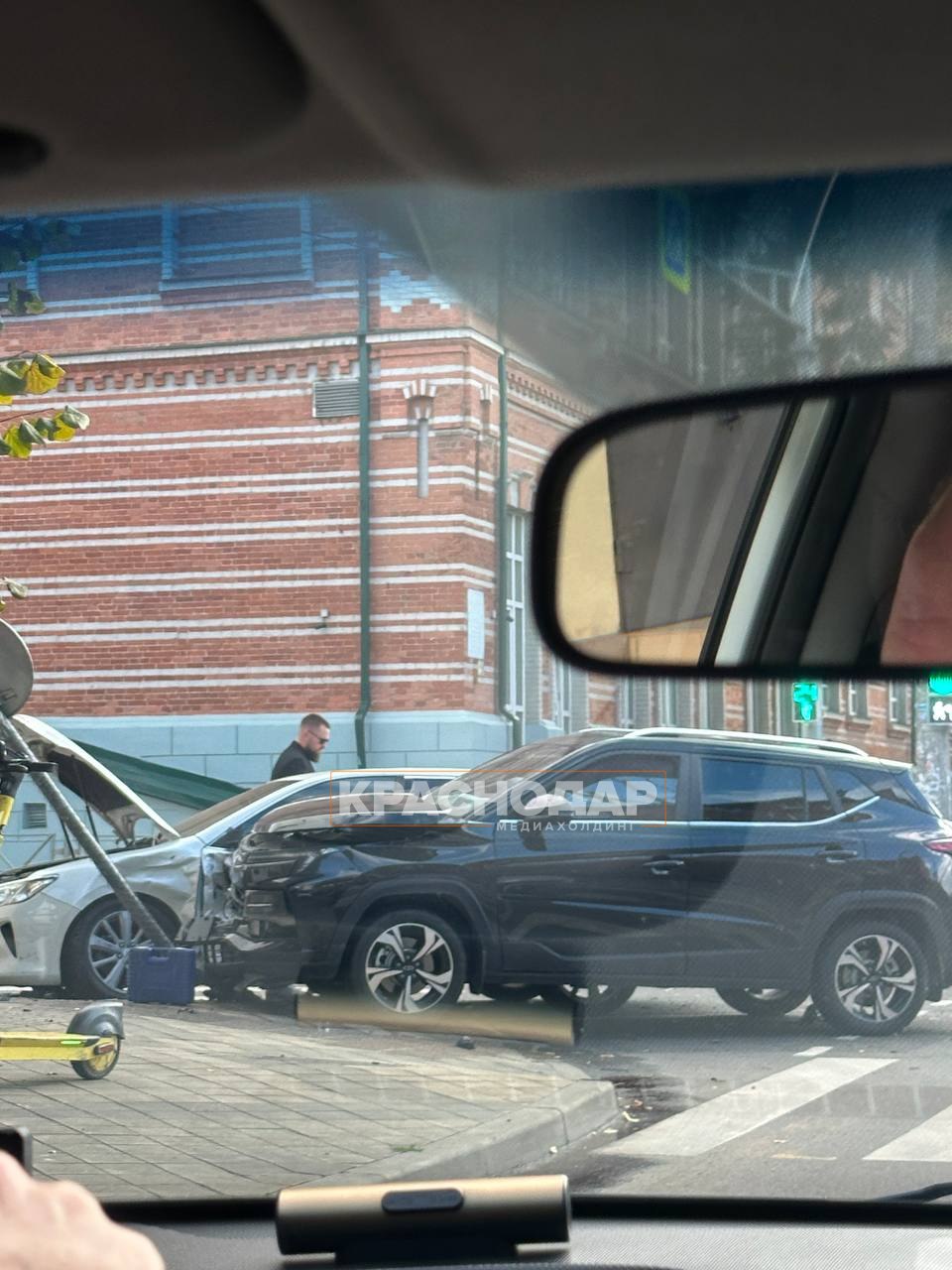 Последствия аварии запечатлели очевидцы: помимо разбитых машин оказался погнут столб. На видео – эвакуатор увозит «Тойоту».