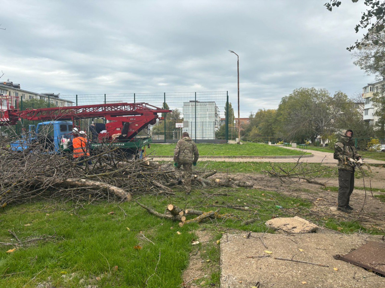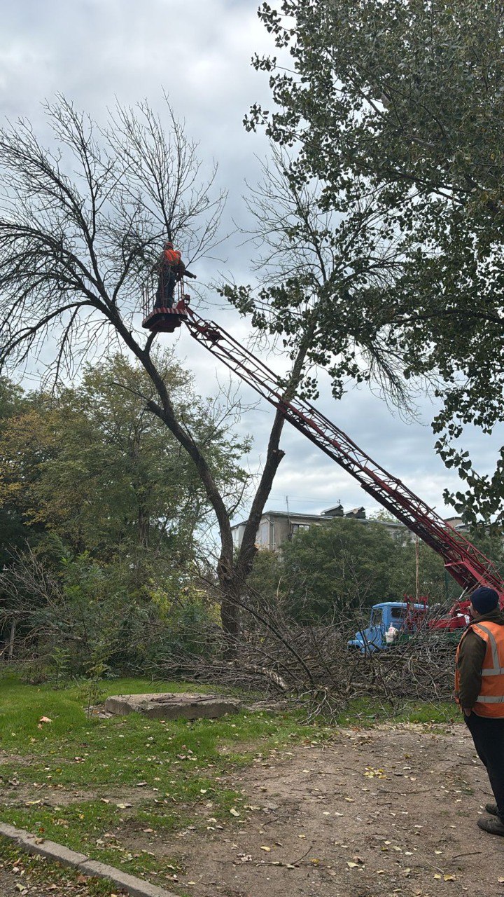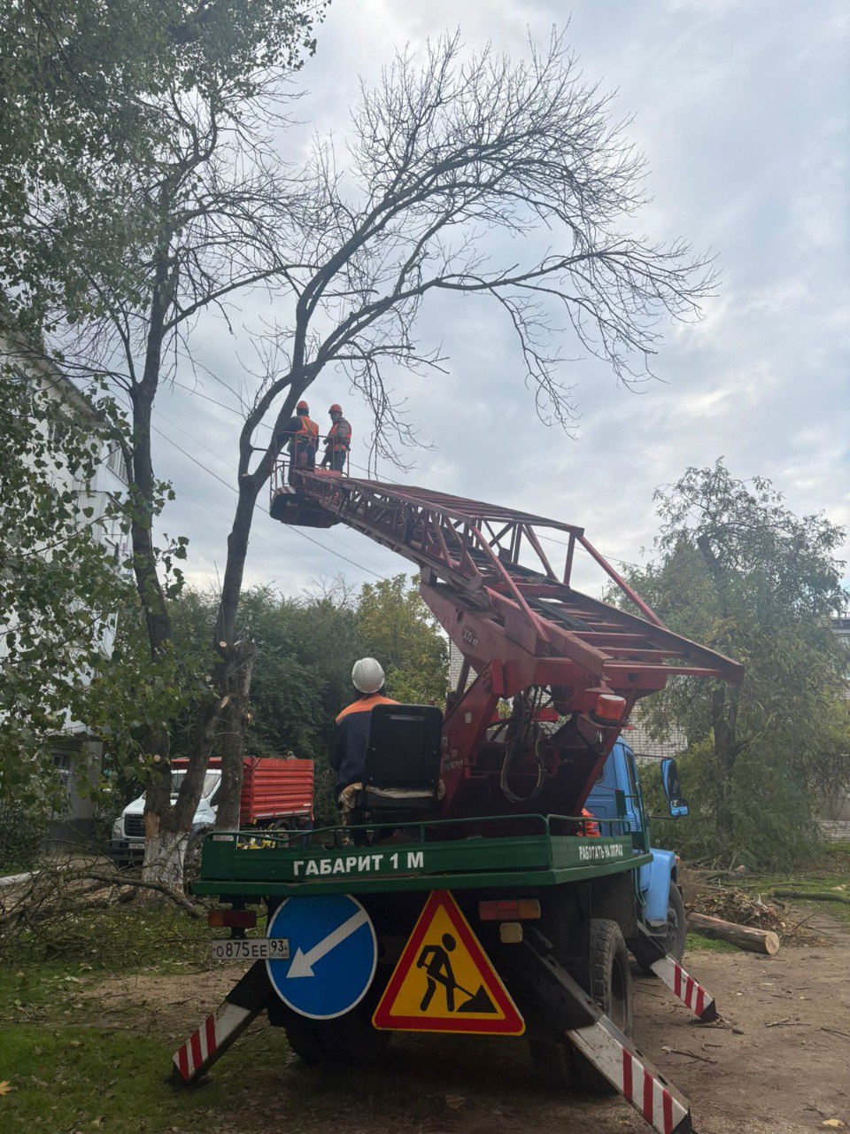 Спил аварийных сухих деревьев по ул. Первомайской, 200 и 202