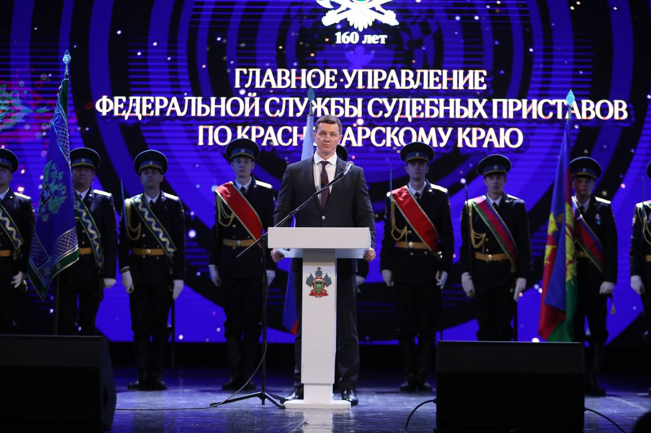Губернатор Кубани Вениамин Кондратьев поздравил сотрудников Главного управления Федеральной службы судебных приставов по краю со 160-летием образования института судебных приставов в России. От имени руководителя ЗСК Юрия Бурлачко и всего депутатского корпуса к виновникам торжества обратился зампредседателя Заксобрания Сергей Болдин.