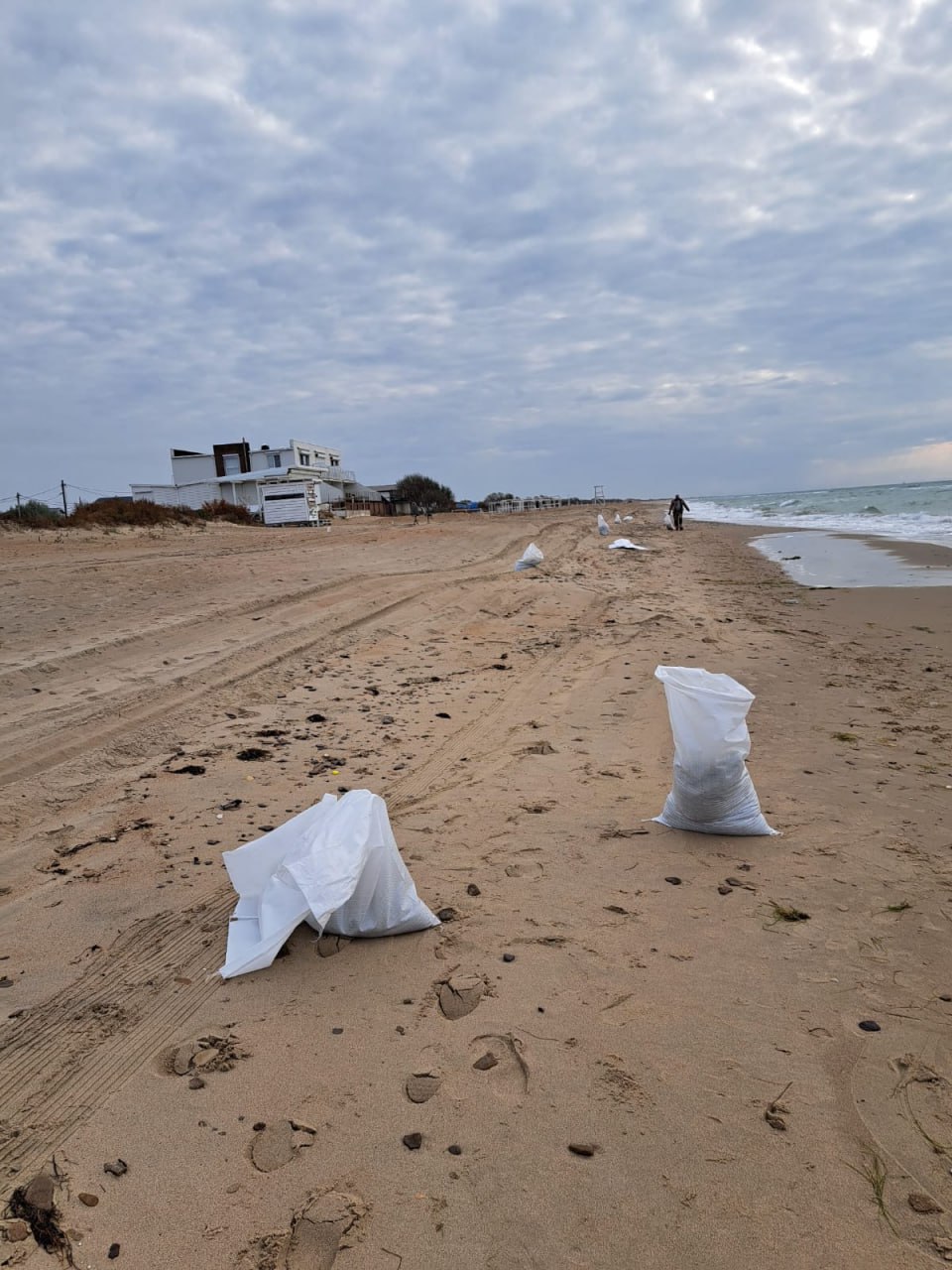 Фракции до нескольких см в диаметре убирают в поселке Веселовка в районе пляжа «Альбатрос». В работах задействованы спасатели и сотрудники администрации муниципалитета.