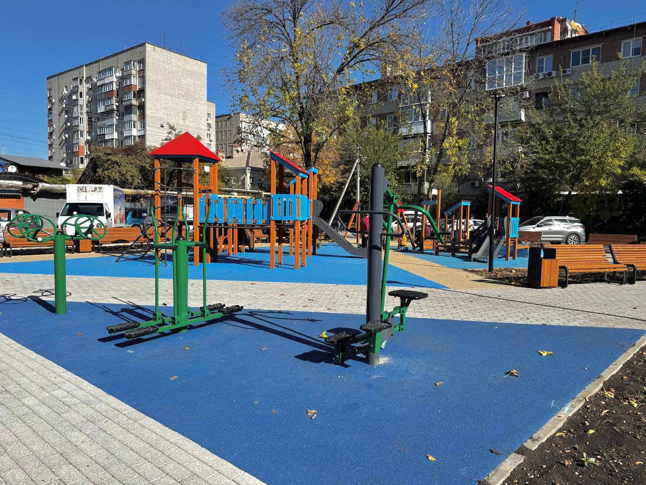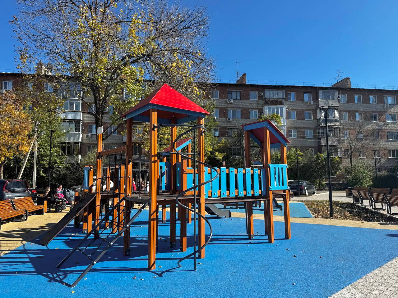 Для детей установили детскую площадку с современным игровым оборудованием и безопасным покрытием.