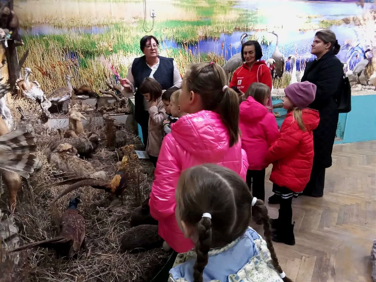 На экспозиции «Животные и птицы степей и плавней» юные посетители с любопытством рассматривали экспонаты, представляющие пресноводных рыб, птиц и животных местности.