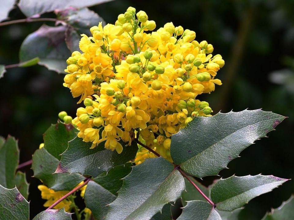 - Магония японская – поразительный кустарник, выделяющийся необычной формой и ярко-желтыми цветами зимой. Этот крупный сорт отлично дополнит границы вашего сада.