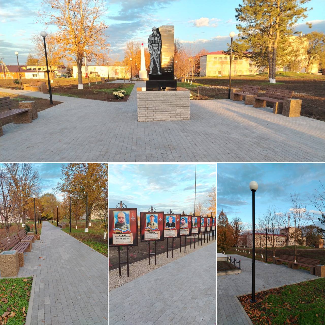 В станице Кисляковской Кущевского района благоустроили сквер «Памяти Героев». Там установили мемориал в честь бойцов, погибших в зоне спецоперации, а также разместили портреты земляков, отдавших жизнь за Родину. Кроме того, уложили тротуарную плитку, сделали освещение и поставили лавочки.