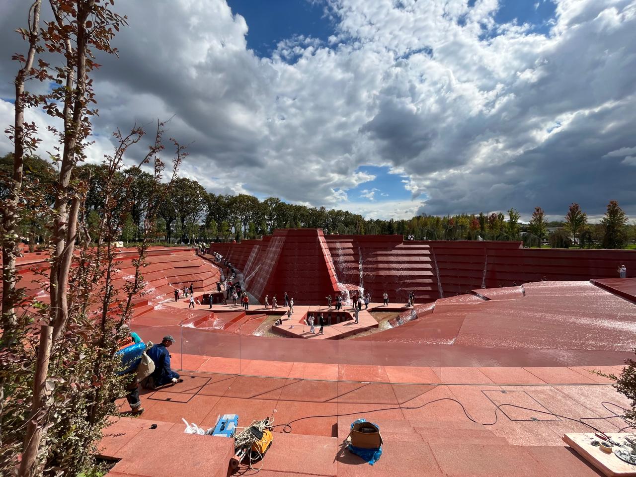 Блогер и путешественник Юрий Родригез заметил, что новый амфитеатр парка Галицкого, выполненный в кирпичных оттенках, по стилю напоминает американский парк Water Gardens в городе Форт-Уэрт, штат Техас.