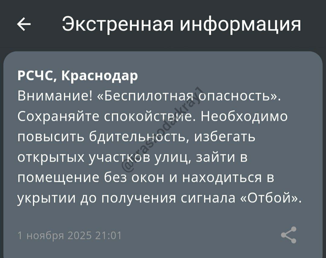ВНИМАНИЕНа территории города Сочи ОБЪЯВЛЕНА УГРОЗА атаки беспилотных летательных аппаратов (БПЛА)Если вы находитесь дома:• Не подходите к окнам• Укройтесь в комнате, окна которой не выходят на море или в помещении без...