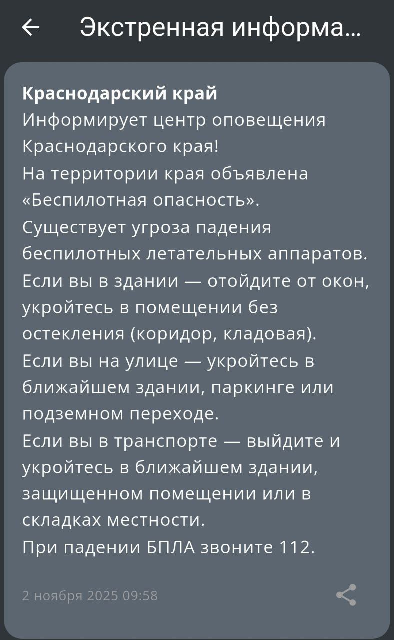 В Краснодарском крае объявлена «Беспилотная опасность»