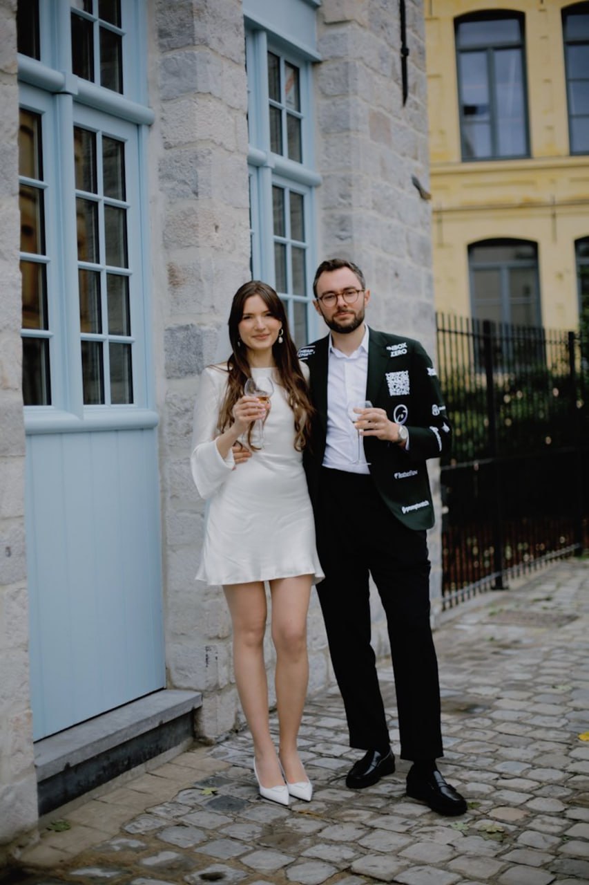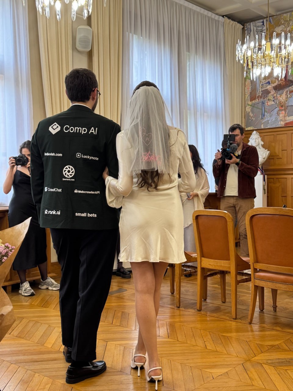 26 IT-стартапов, в основном из сферы искусственного интеллекта, поддержали идею, разместив свои логотипы на пиджаке жениха в обмен на вклад.