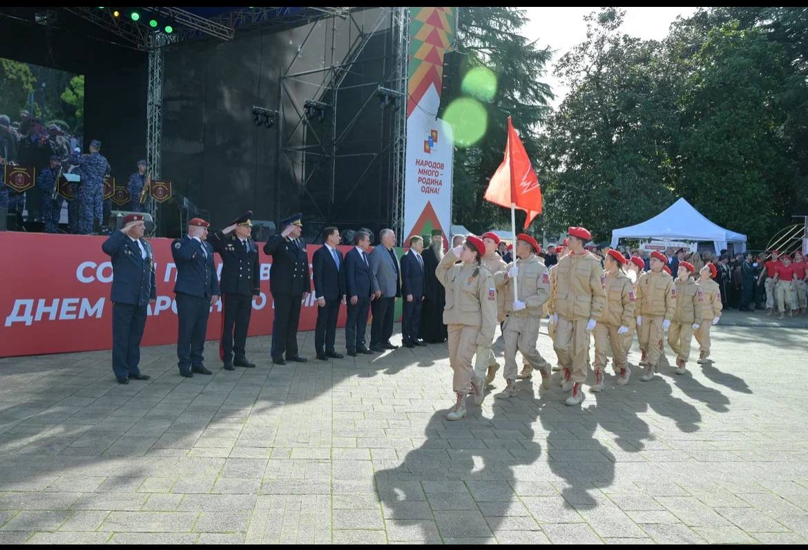 Сегодня День Народного Единства. Новый государственный праздник по вечно актуальному поводу. Встретил его в Сочи, где на Площади Флага перед Городской Администрацией мы вместе с Андреем Прошуниным, мэром Сочи, Виктором Филоновым, председателем Сочинского Совета депутатов, и моими земляками принимали парад юнармейцев и обходили выставочные палатки национально-культурных обществ родного города.